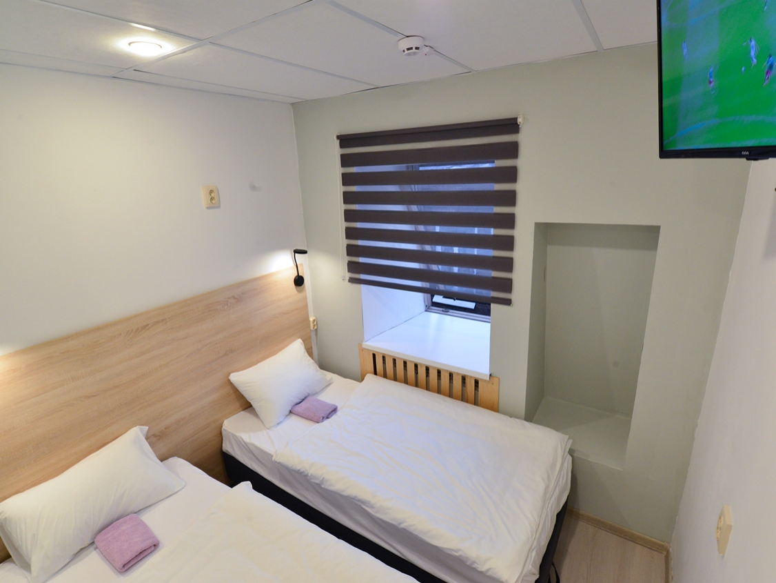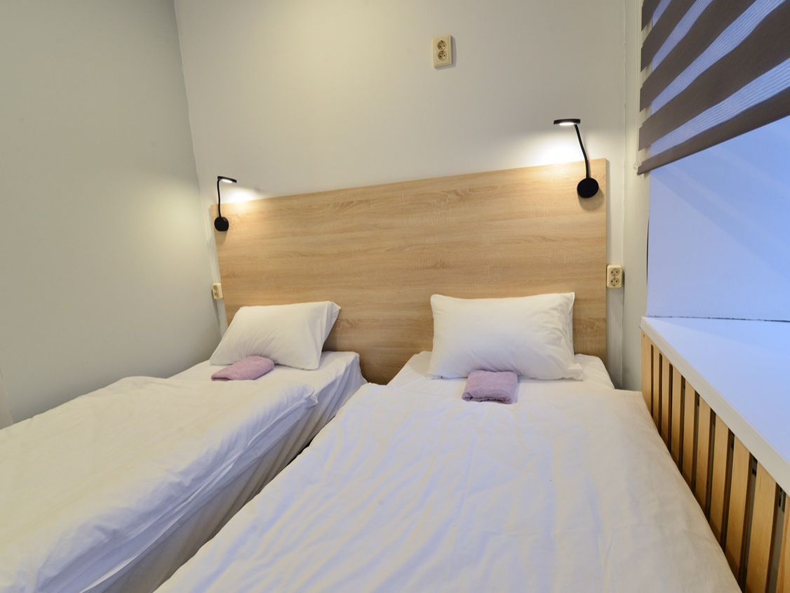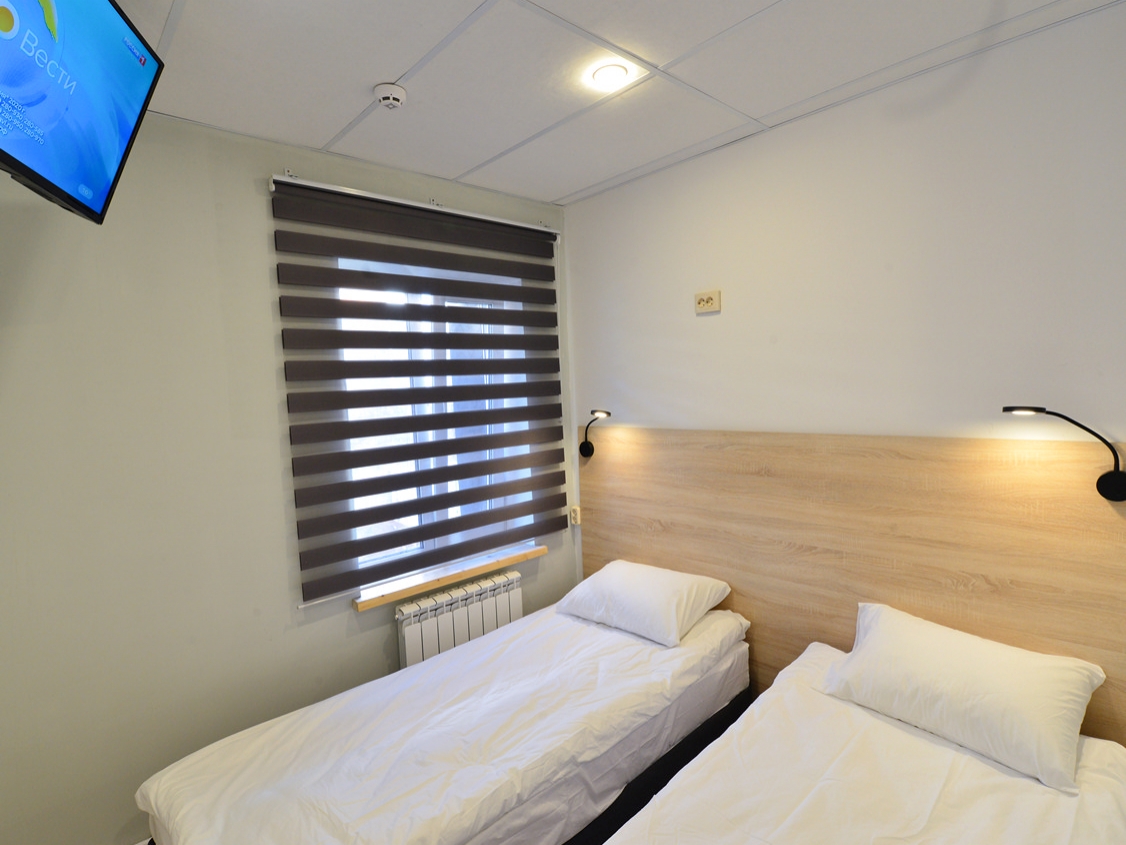 Номер категории «2-местный с раздельными кроватями и доп. местом» — Стандартный однокомнатный номер. Две односпальные кровати и одно дополнительное место кресло-кровать. В номере: душ, туалет, ТВ, кондиционер. А также: столик, табуреты, зеркало.